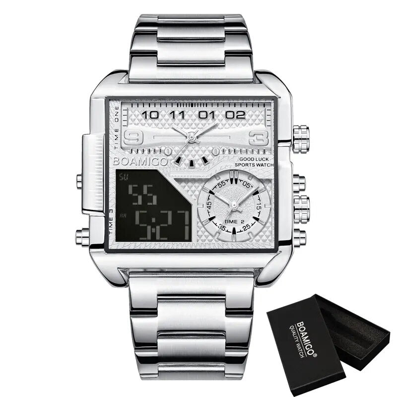 O Relógio Masculino Esportivo - Big Elegance é uma obra-prima de engenharia e design, perfeitamente combinando funcionalidade e estilo em um único acessório. Este relógio oferece muito mais do que apenas contar as horas; ele é uma afirmação de elegância e versatilidade.